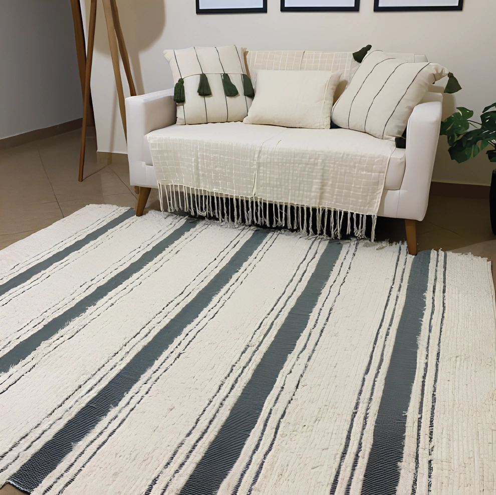 Tapete para Sala Artesanal Tear Cru em Algodão - Tamanho Especial (Sob Encomenda)